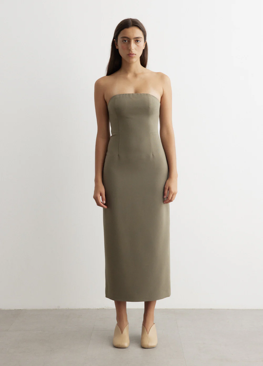 Rosbandi Bandeau Midi Dress in Black Pink Lining