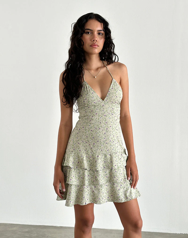 Nenita Halterneck Mini Dress in Oversize Jaguar Brown
