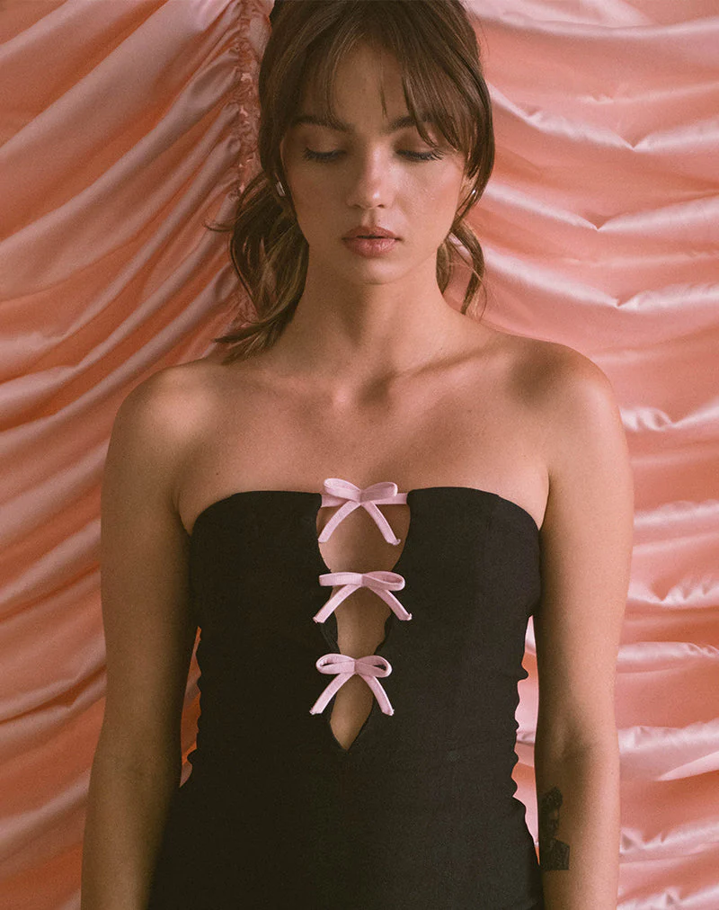 Off-Shoulder Tiered Corset Mini Dress in Berry Red