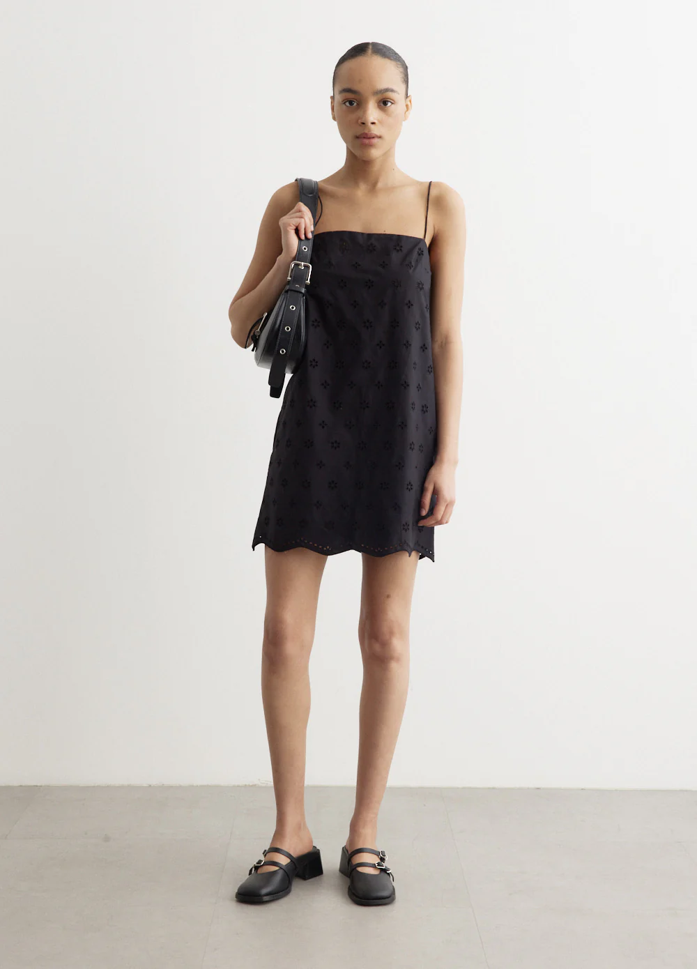 Bripca One Shoulder Neck Tie Mini Dress in Black Velvet