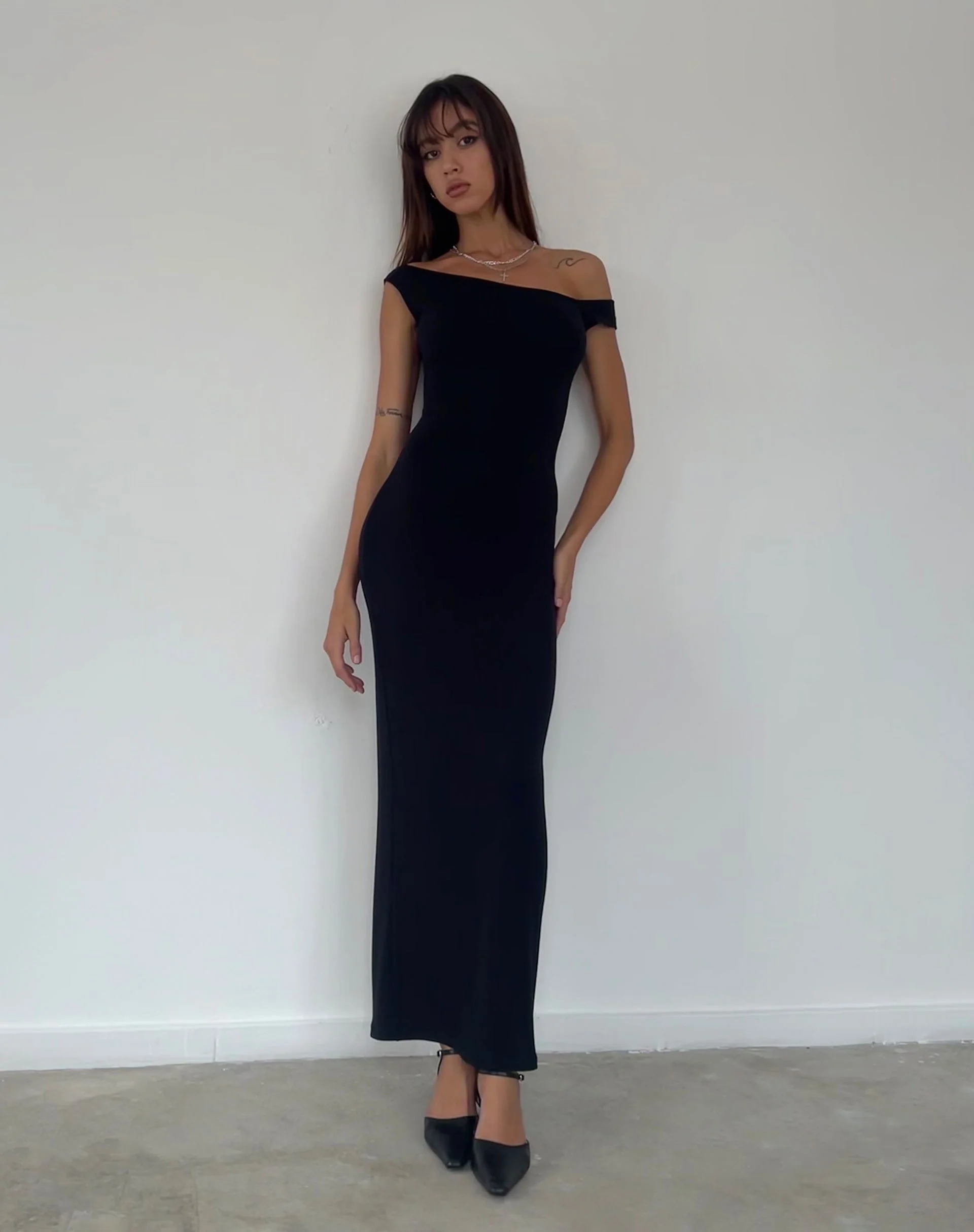 Ardita Asymmetrical Rib Knit Maxi Dress in Black