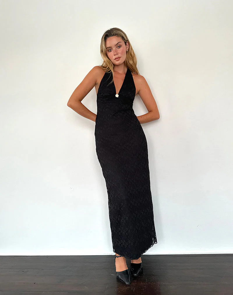 Atma Halterneck Maxi Dress in Canina Lace Black