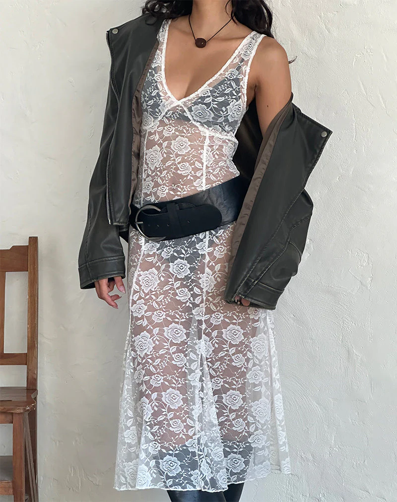 Valea Unlined Midi Dress in Ivory Big Rose Lace