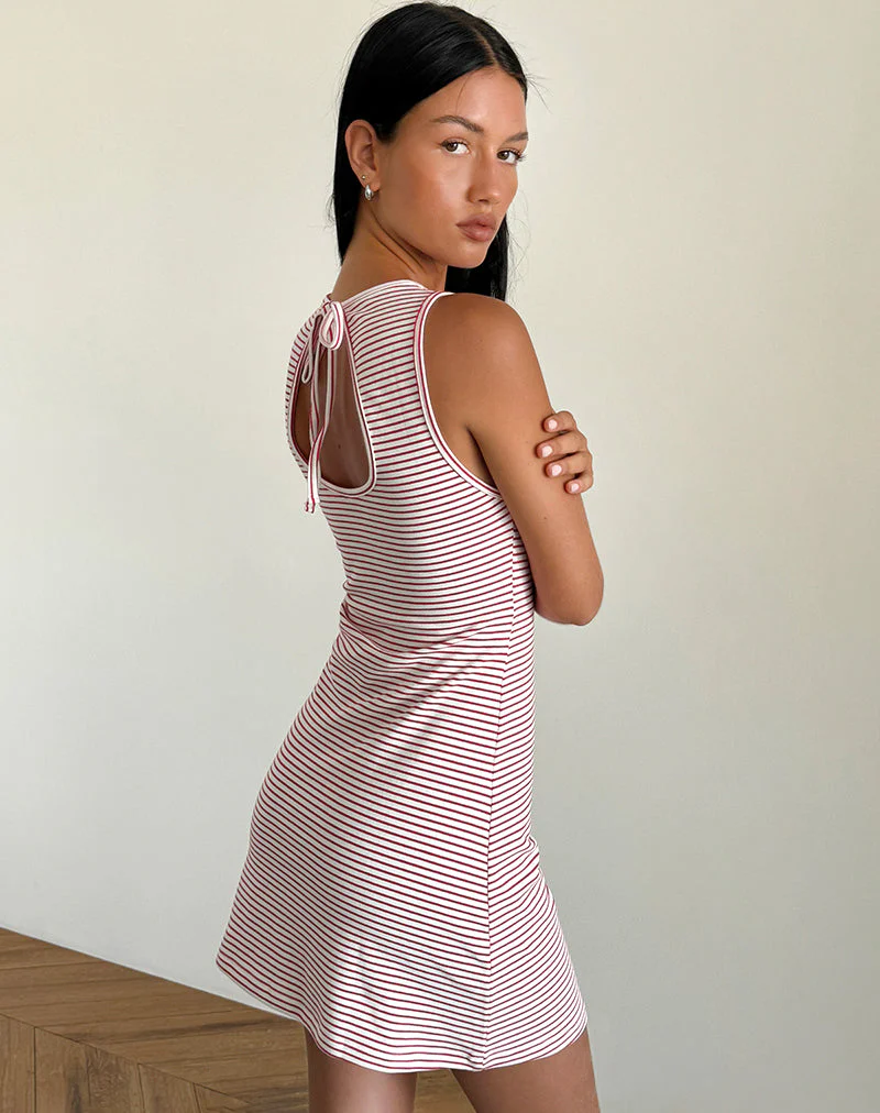 Muzuki Jersey Mini Dress in Red and White Stripe